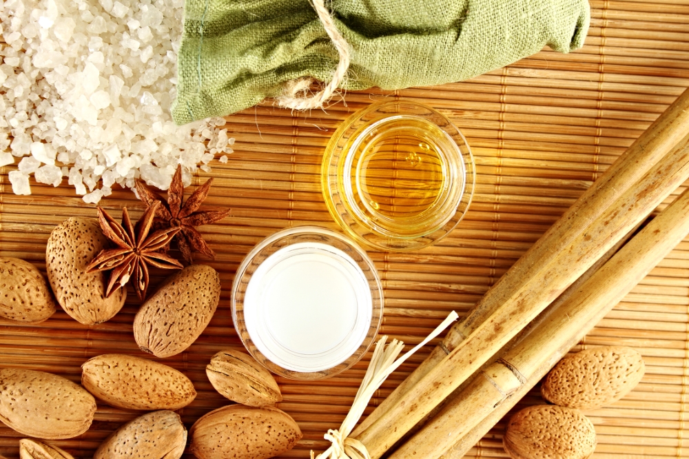 - Pour almond oil over the sugar just to cover and stir it with a spoon to allow it to absorb fully.