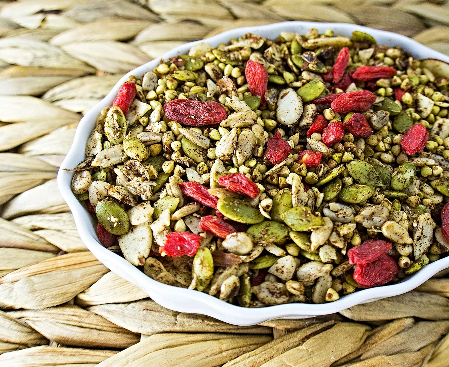 - Add to a large bowl and add in goji berries and any additional goodies you want like cacao nibs or other dried fruit.