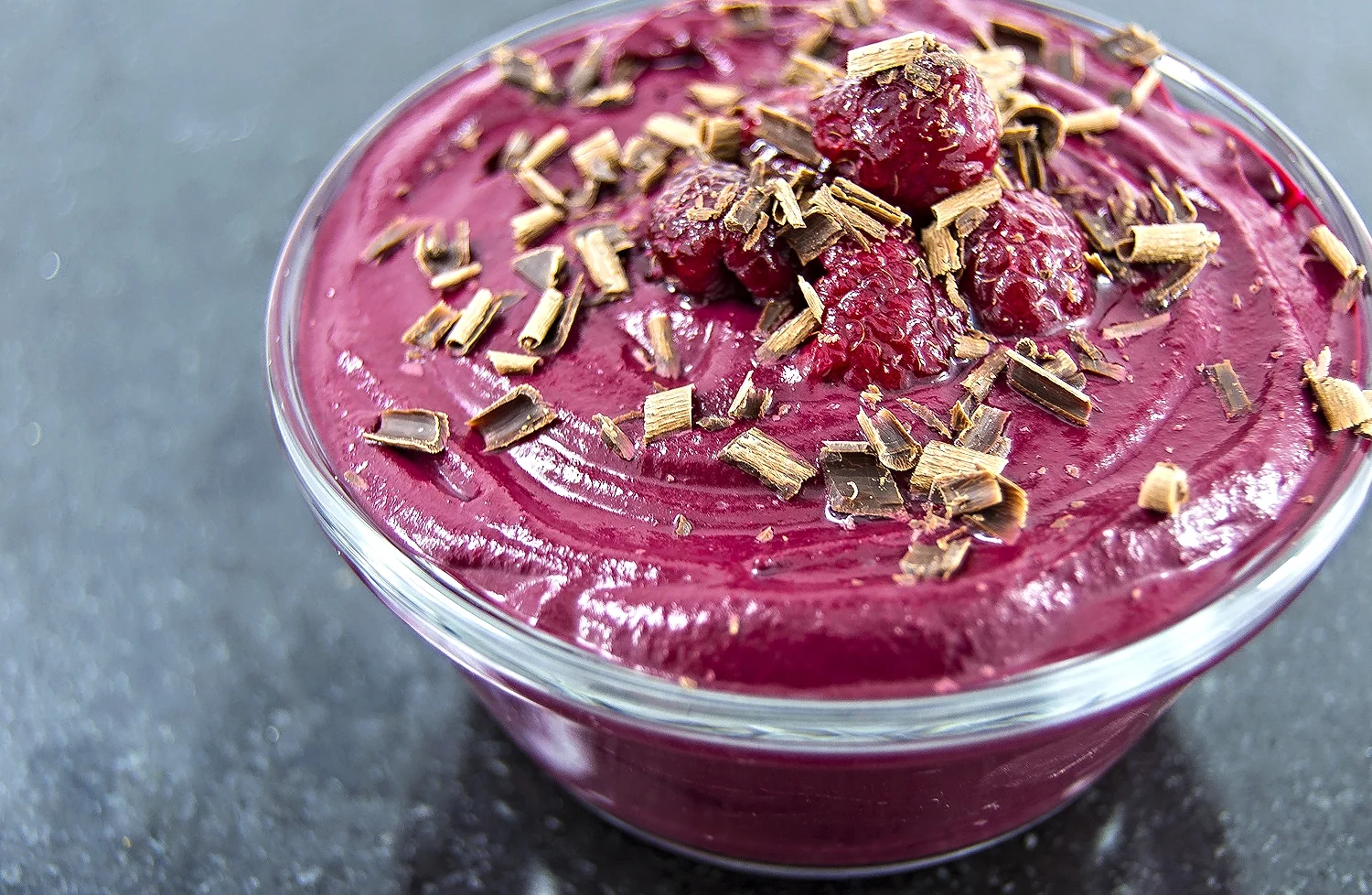 If seeds bother you, heat the raspberries in a pan until softened with 2 TBL water and then mash with a fork. Strain the raspberries into the blender through a sieve to remove any seeds, pushing the solids with a spatula OR just use pitted cherries.
